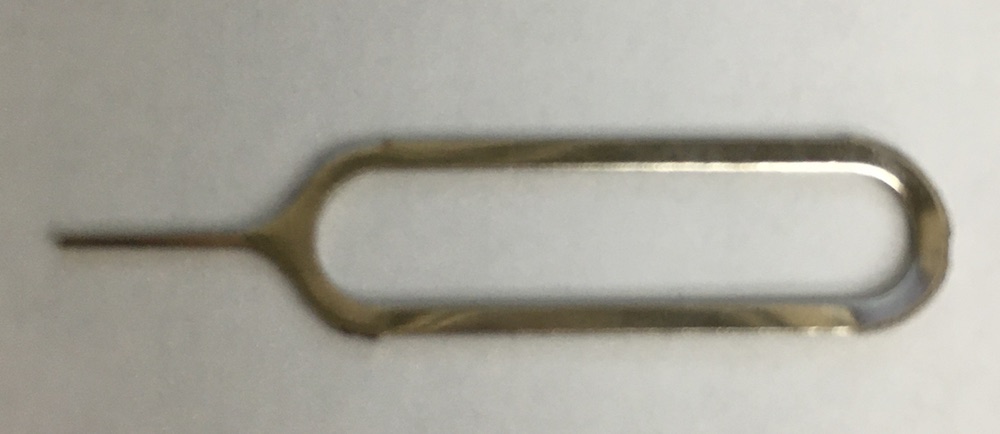 このピンが同梱されている場合があります。充電口の脇の丸いボタンを押すとすべての設定がリセットされてしまい発信機として動作しなくなりますので絶対に押さないようにして下さい。